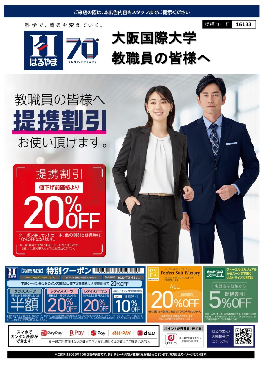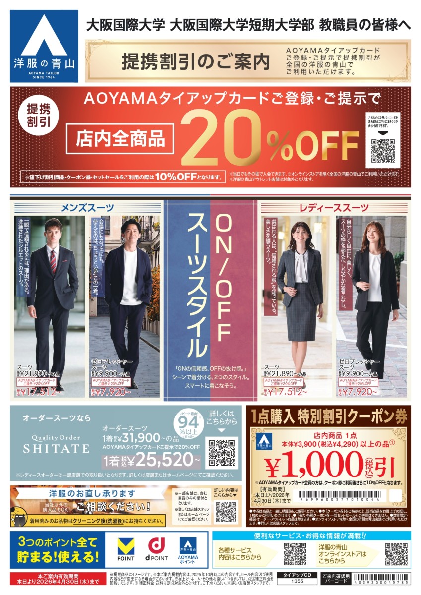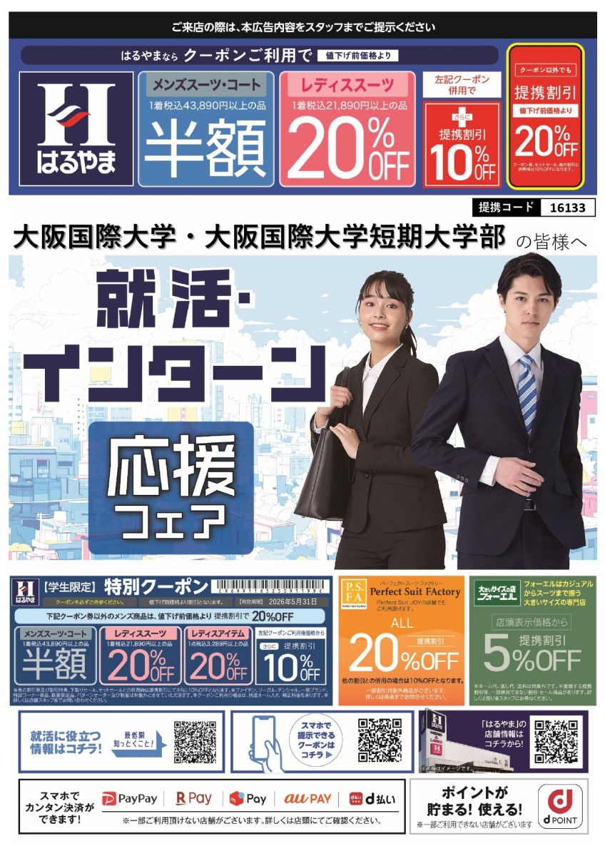 学園サポート業 学園関係者の皆様のニーズをもとに、よりよい学園生活を過ごせるように幅広いジャンルのサービスの取扱いでサポートをいたします。 制服・制定品販売 パソコン販売 ノベルティ 制作 袴レンタル スーツ紹介 施設管理(警備・清掃) Wifi貸出紹介 門真教習所紹介 購買部運営 自動販売機管理 コンビニ運営(FC) 食堂運営管理 他、詳細なご案内 袴レンタル 心に残る卒業式にぜひご利用ください M ・AI ・M チラシ 公式HPをみる さがの館 チラシ 公式HPをみる ange チラシ 公式HPをみる スーツ oiu学生が使える割引もございます。ぜひ確認して下さいね。 洋服の青山(学生向け) 公式HPをみる 洋服の青山(教職員向け) SUITCAMPANY(学生向け) 公式HPをみる SUITS QUARE(教職員向け) はるやま商事(学生向け) 公式HPをみる はるやま商事(教職員向け) 教習所紹介 学生時代に!お得に!免許を取得しよう 門真自動車教習所 チラシ 公式HPをみる Wi-Fiレンタル かつてない海外Wi-Fiレンタル WiFiBOX チラシ 公式HPをみる eSIM square チラシ 公式HPをみる お問合せ お気軽にお問い合わせください。 CONTACT US
